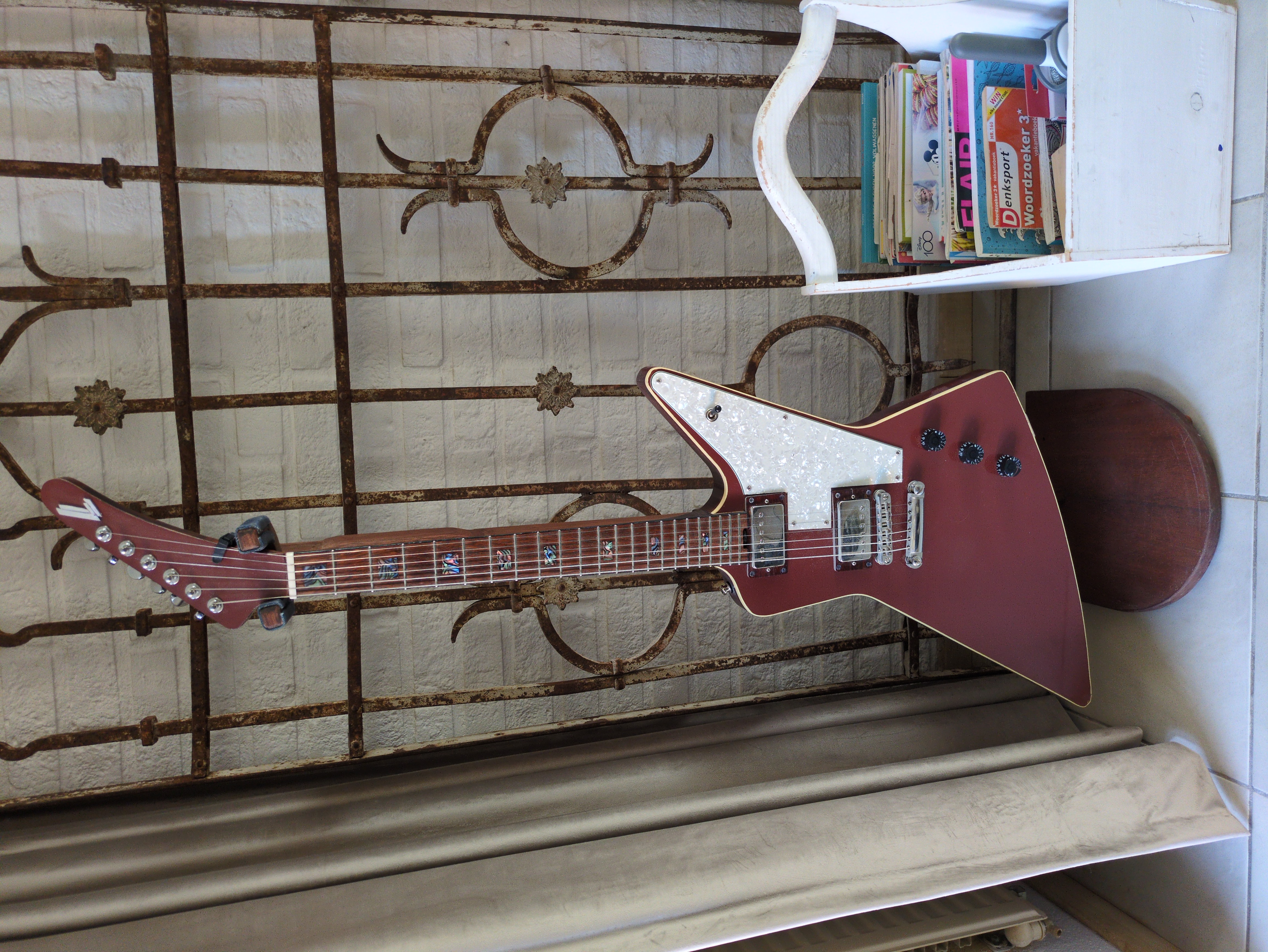 Body hollowed hardwood found in my garage top made from palletwood Neck some hardwood found in my garage